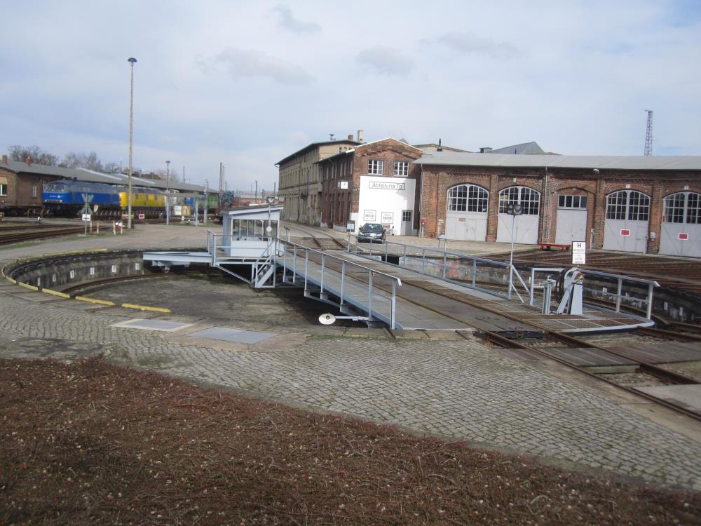 Die Drehscheibe ist das Herzstück des Museumsgeländes. Sie dient dazu, ankommende Lokomotiven zu drehen und somit auf die angrenzenden Lokschuppengleise zu verteilen. Die Anlage hat eine Tragfähigkeit von 350 Tonnen. Sie wird wahlweise elektrisch, per Druckluft oder per Muskelkraft angetrieben. Die Drehbrücke ist knapp 24 Meter lang und damit die größte in Deutschland noch existierende Anlage dieser Art.