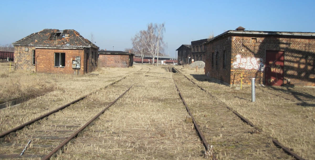 Im Bereich des ehemaligen Lokschuppens I konnte man vor gut 10 Jahren noch die Grube der ehemaligen Drehscheibe erkennen. Heute ist die Grube verfüllt und es führt ein Gleis darüber.