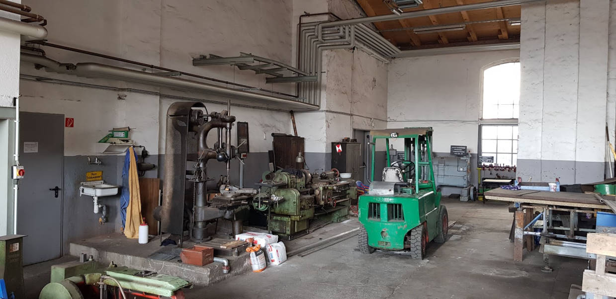 Our present workshop was a storage room in the days of the Deutsche Reichsbahn. Formerly there was a small administration room at the back.