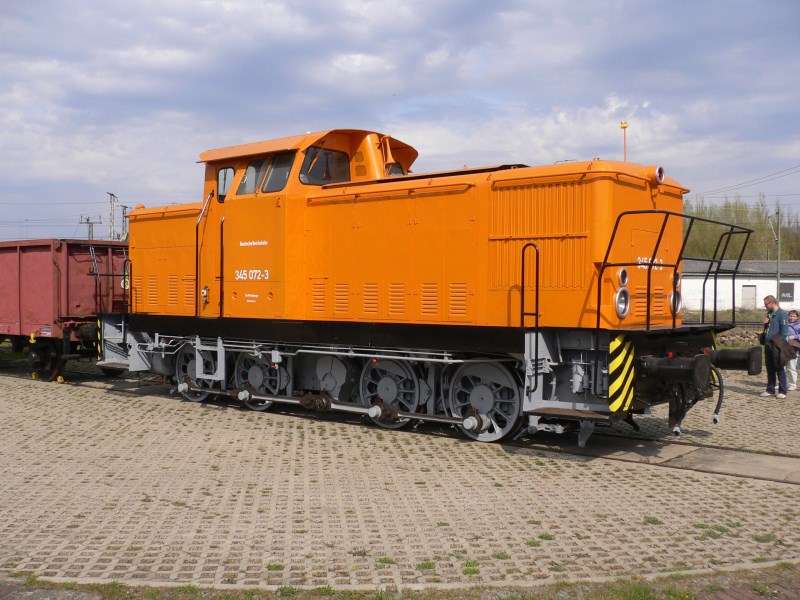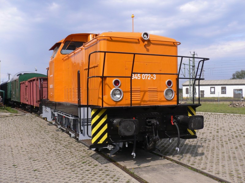 diesel locomotive 345 072-3| Builder: | LEW Henningsdorf | | Type: | V 60 | | Constructed: | 1977 | | Works number: | 15603 | | Power output: | 650 PS | | Maximum speed: | 60 km/h | | State: | Exhibit |
