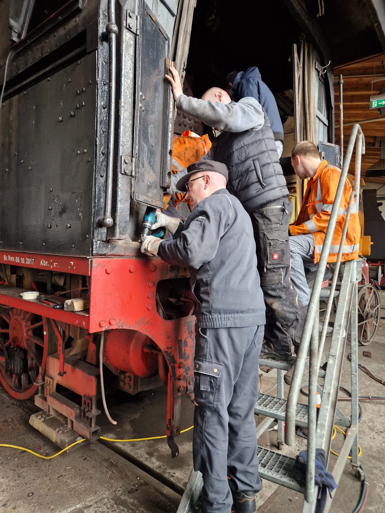 We'll keep that a secret for now which of our steam engines will be treated. In any case, before a new boiler can be installed on a locomotive, the old boiler and the driver's cab must first be removed. The latter covers the rear end of a locomotive boiler. In addition, various components have to be removed from a steam locomotive before a boiler can be lifted off. To manage expectations here as well: the whole process will not be completed within a few weeks, but will take a considerably longer period of time.