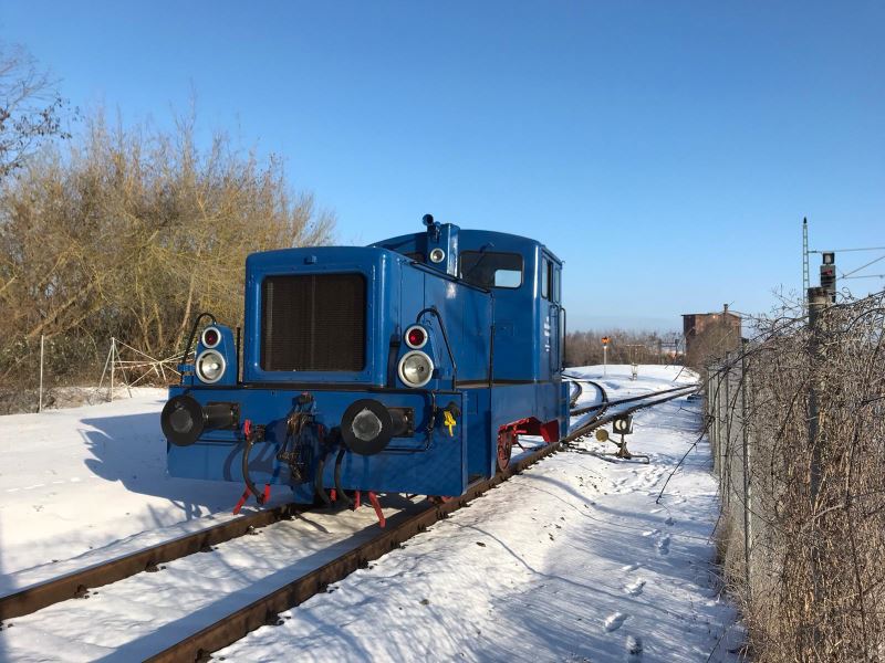 As part of the shunting trips, the Magdeburg side of the station was also used. The following picture shows one of our diesel locomotives V23 on its way there.