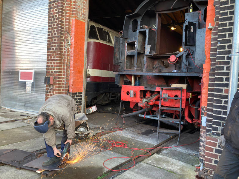 With big steps the completion of the tender for the steam locomotive 50 3570 is approaching. Still some sheet metal work had to be done. But also rust protection paint could be applied.