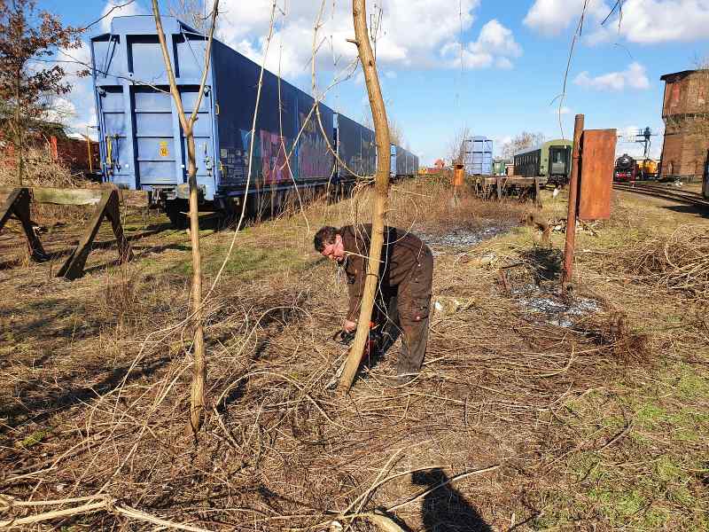 And since the weather was nice, some active people could take care of the vegetation in the area. Here some bushes were cut back, which limited the view into the track area.
