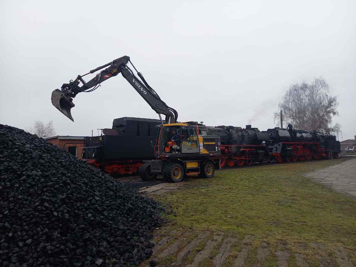 Am Dienstag und Mittwoch dieser Woche galt es, erstmalig in diesem Jahr wieder zwei Dampfloks anzuheizen. Zunächst wurde 50 3570 unter Dampf gesetzt, die ihrerseits die 01 509 aufdampfte. Nachdem dabei jedoch einige Teile des Lokschuppens eingenebelt wurden, wurde die ganze Aktion nach draußen verlegt. Bei der Gelegenheit wurde auch gleich der Tender der 50 3570 mit Kohle beladen.