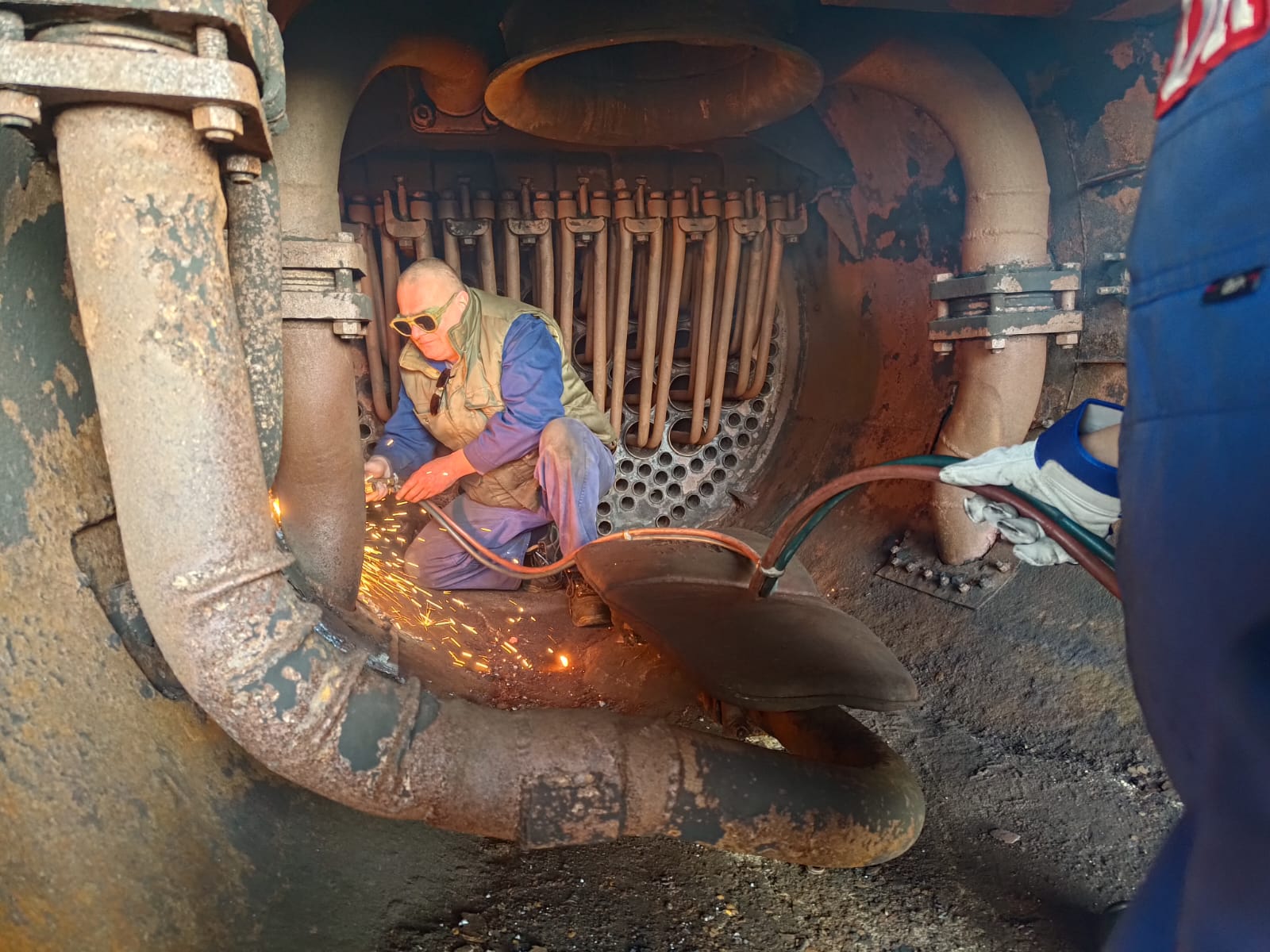 Other boiler attachments are also being refurbished, here the colleague is cleaning a few wash hatches.