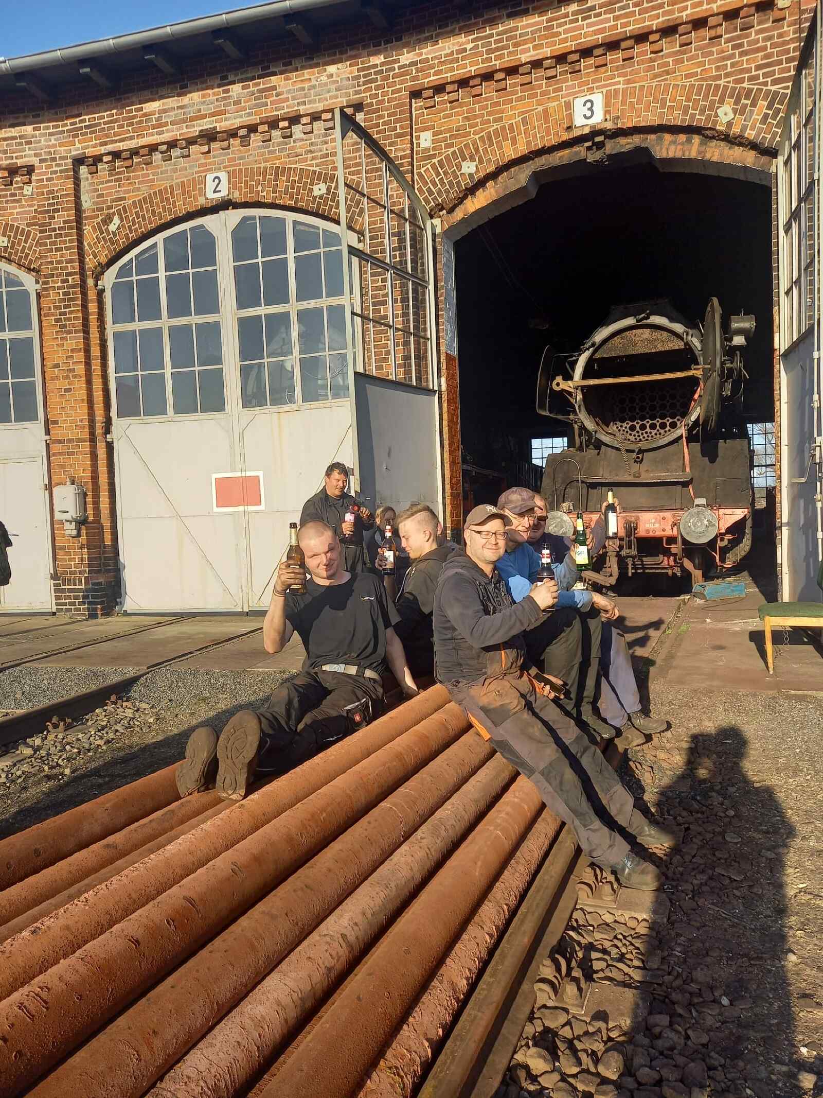 Over the past few weekends, we have been hard at work on the boiler of our steam locomotive 50 3570. As previously reported, all the pipes inside were to be removed and replaced with new ones. This work is tedious and dirty, so we are pleased that this work has now been completed. Today's pictures show some snapshots of the work. The first step was to loosen the pipes from their anchoring and then pull them out of the inside of the boiler. This not only requires labour and sweat, but also a lot of oxygen and acetylene for the welding torches. It should be borne in mind that the pipes are quite heavy and unwieldy. They weigh between 40 and 80 kilograms, depending on the diameter. So you have to be strong to complete the work. But the drink at the end tastes all the better and you are guaranteed not to need to go to the gym afterwards.