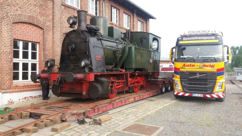 Am 29.5.2017 wurde Emma auf einen Spezialtieflader verladen und ging auf die Reise in den Harz, wo sie am 30.5. wohlbehalten ankam.