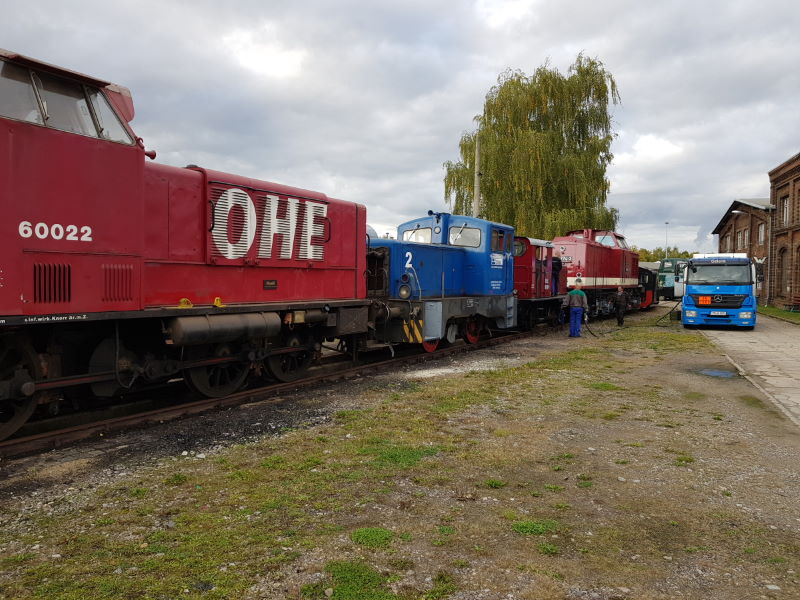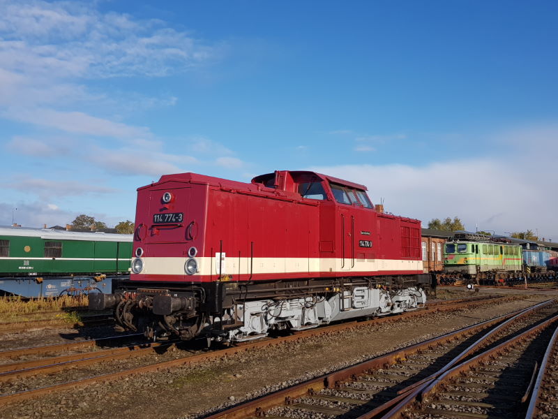 Wer am Sonntag anwesend war, konnte sogar die ersten Fahrten unserer Diesellok 114 774-3 mit eigener Kraft erleben. Die Diesellok wurde 1975 durch die Deutsche Reichsbahn in Betrieb genommen und ist mit ihren 45 Jahren das jüngste Mitglied in unserer Fahrzeugausstellung.