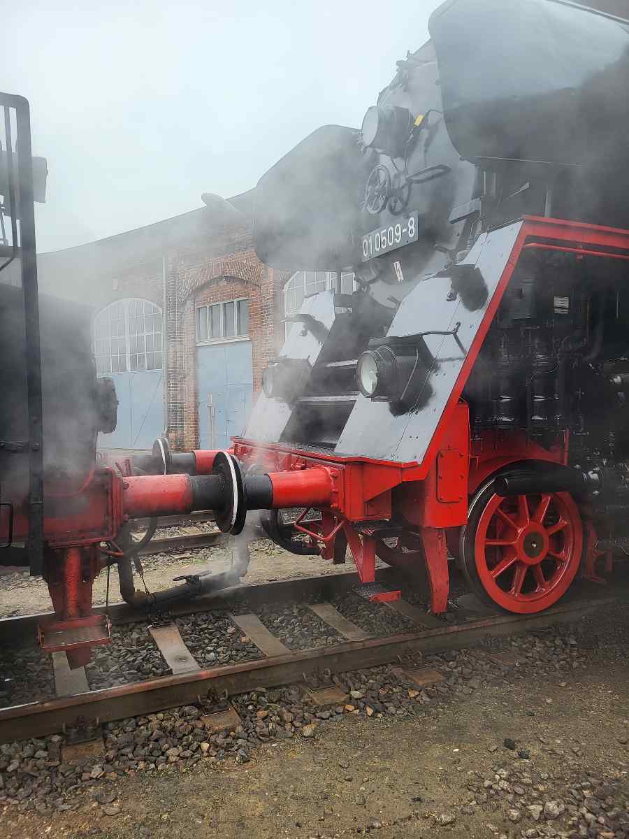 Nachdem diese Lok unter Dampf stand, wurde sie an die 01 509 gekuppelt und die Heizleitungen der beiden Lokomotiven wurden verbunden. Auf dem folgenden Bild sieht man die Heizleitung unter den Puffern zwischen den beiden Lokomotiven