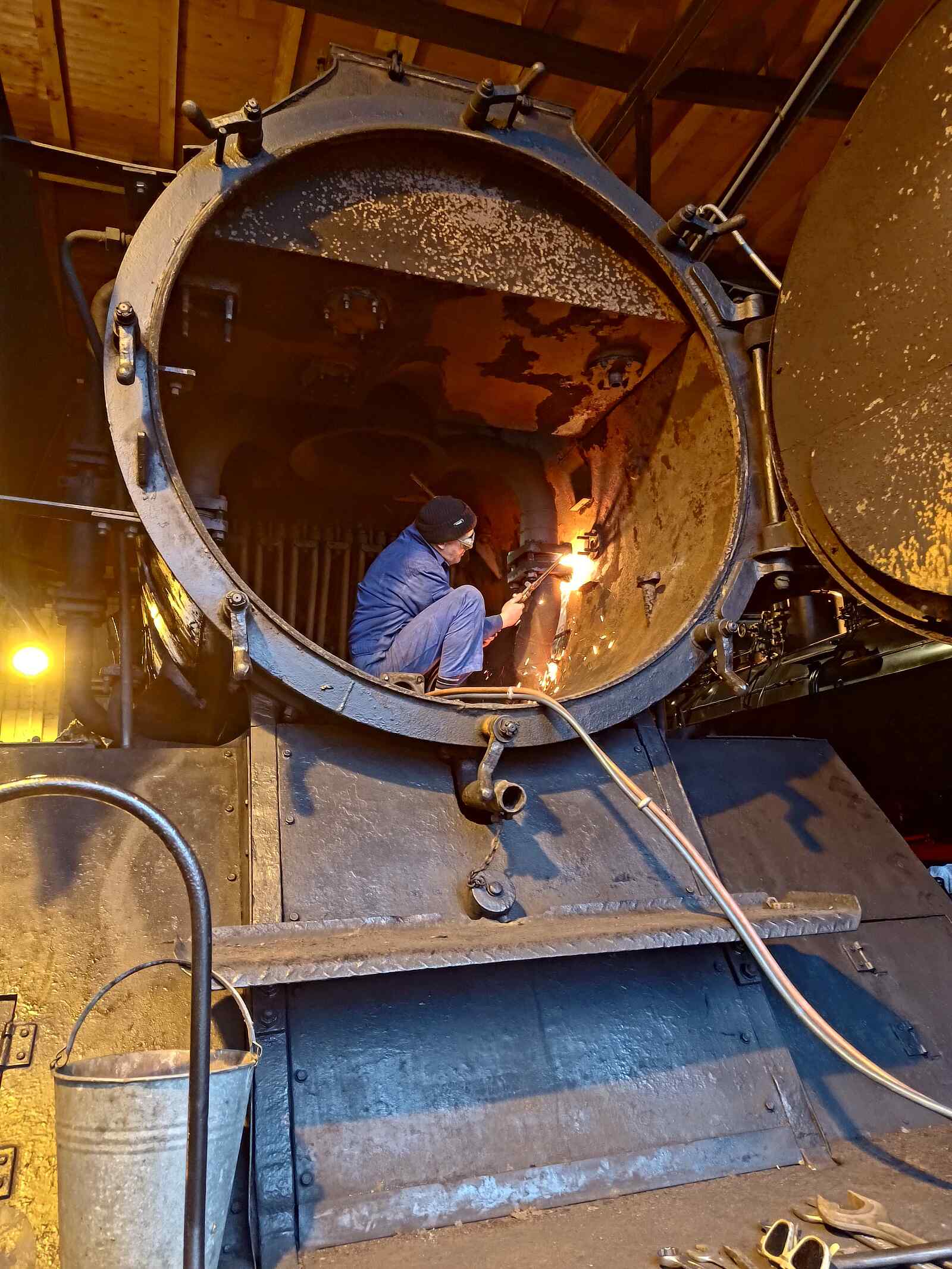 Our steam locomotive Emma also needs maintenance. Here the firebox, ash pan, smoke chamber and boiler tubes have been thoroughly cleaned.