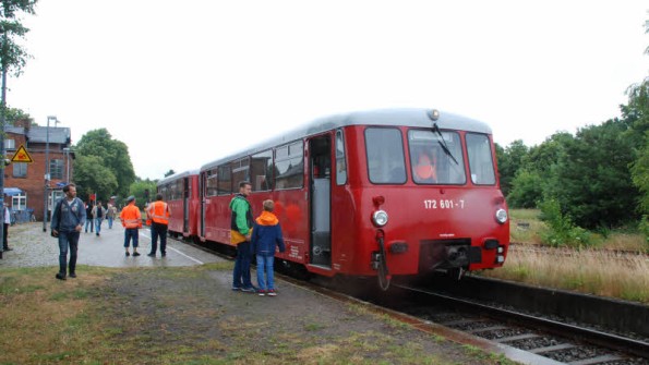 Der Steuer- und Motorwagen, den die Neustrelitzer den Besuchern präsentieren, stammt aus dem Jahr 1962 und war bis 2002 in Mirow im Einsatz. Die "Ferkeltaxen" sind in ihrer Hochzeit auf den Nebenstrecken unterwegs und erhalten ihre "Spitznamen", weil die Fahrgäste fast schon zusammengepfercht auf den Bänken sitzen. So eng geht es am Wochenende bei den Fahrten vom Lokschuppen nicht zu. Der Neustrelitzer Hafenbahn-Verein, 2003 gegründet, nimmt einige Jahre später nach der Außerbetriebnahme sich des VT 172 001 an. "Er stand im Bahnwerk Neustrelitz und hatte einen Riss im Rahmen. Wir haben ihn aufgearbeitet. Er ist allerdings eine Dauerleihgabe des Bahnwerk-Museums Nürnberg", erklärt Bernhard Funk.