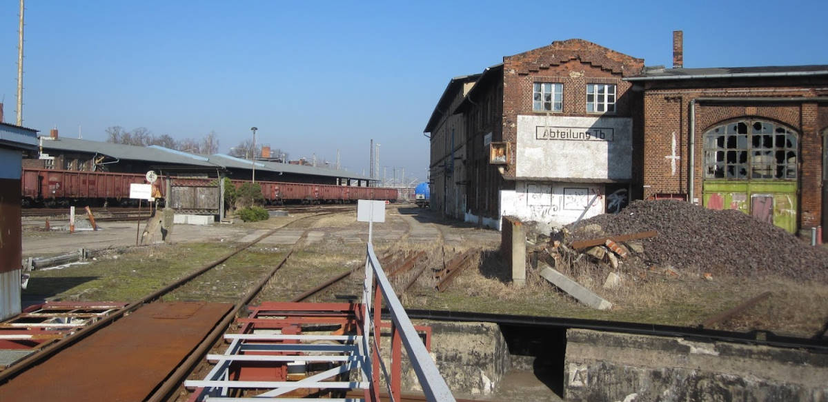 Im Bereich des ehemaligen Lokschuppens I konnte man vor gut 10 Jahren noch die Grube der ehemaligen Drehscheibe erkennen. Heute ist die Grube verfüllt und es führt ein Gleis darüber.