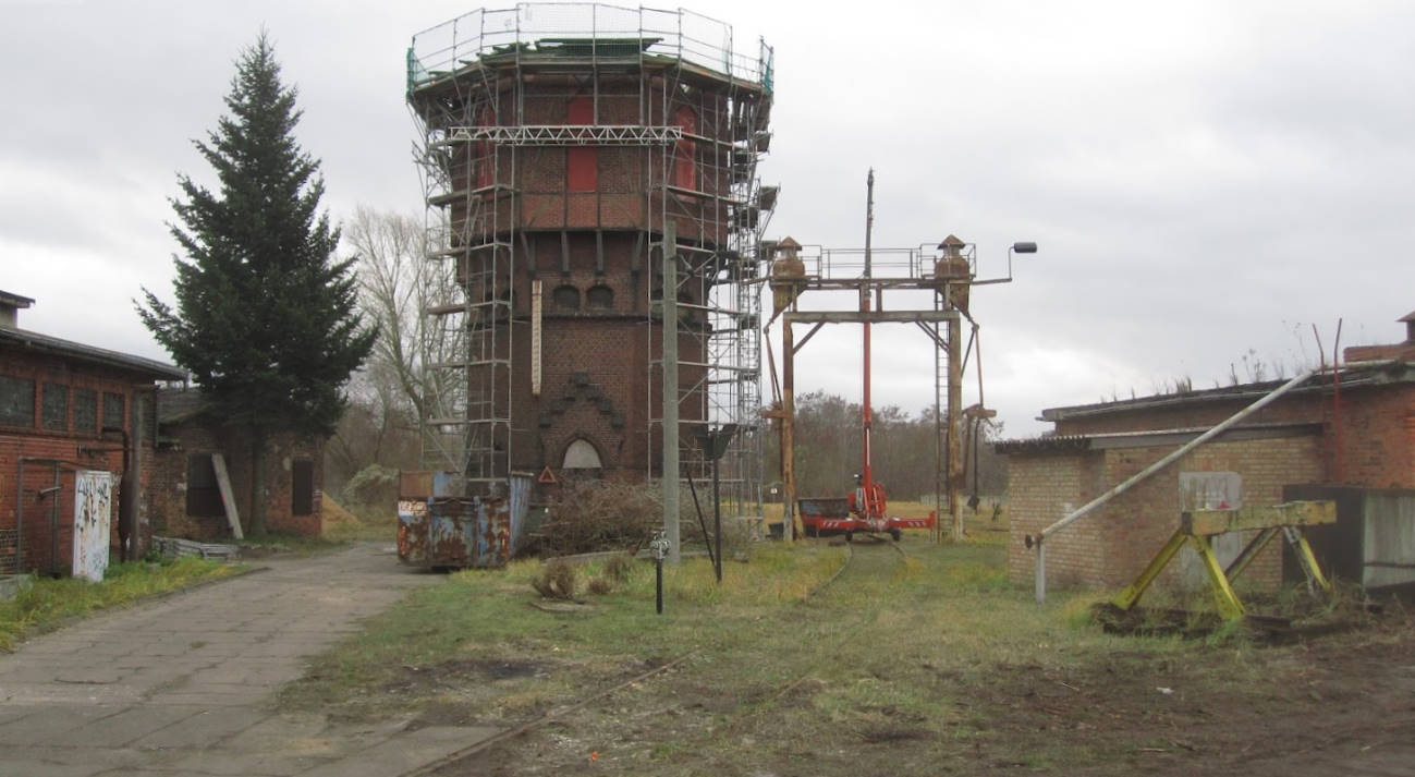 Blick auf den Wasserturm und die Besandungsanlage