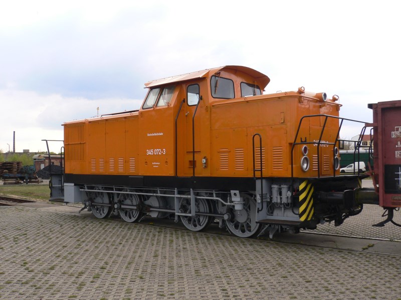 diesel locomotive 345 072-3| Builder: | LEW Henningsdorf | | Type: | V 60 | | Constructed: | 1977 | | Works number: | 15603 | | Power output: | 650 PS | | Maximum speed: | 60 km/h | | State: | Exhibit |