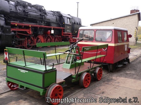 Bei unserer Veranstaltung am 28. und 29.10.2006 waren die Mitglieder der Dampflok-Gemeinschaft 41 096 bei uns zu Gast. Sie haben ihre Bahnmeisterdraisine KlV 11 4172 mitgebracht, die auch für Mitfahrten bereitstand.