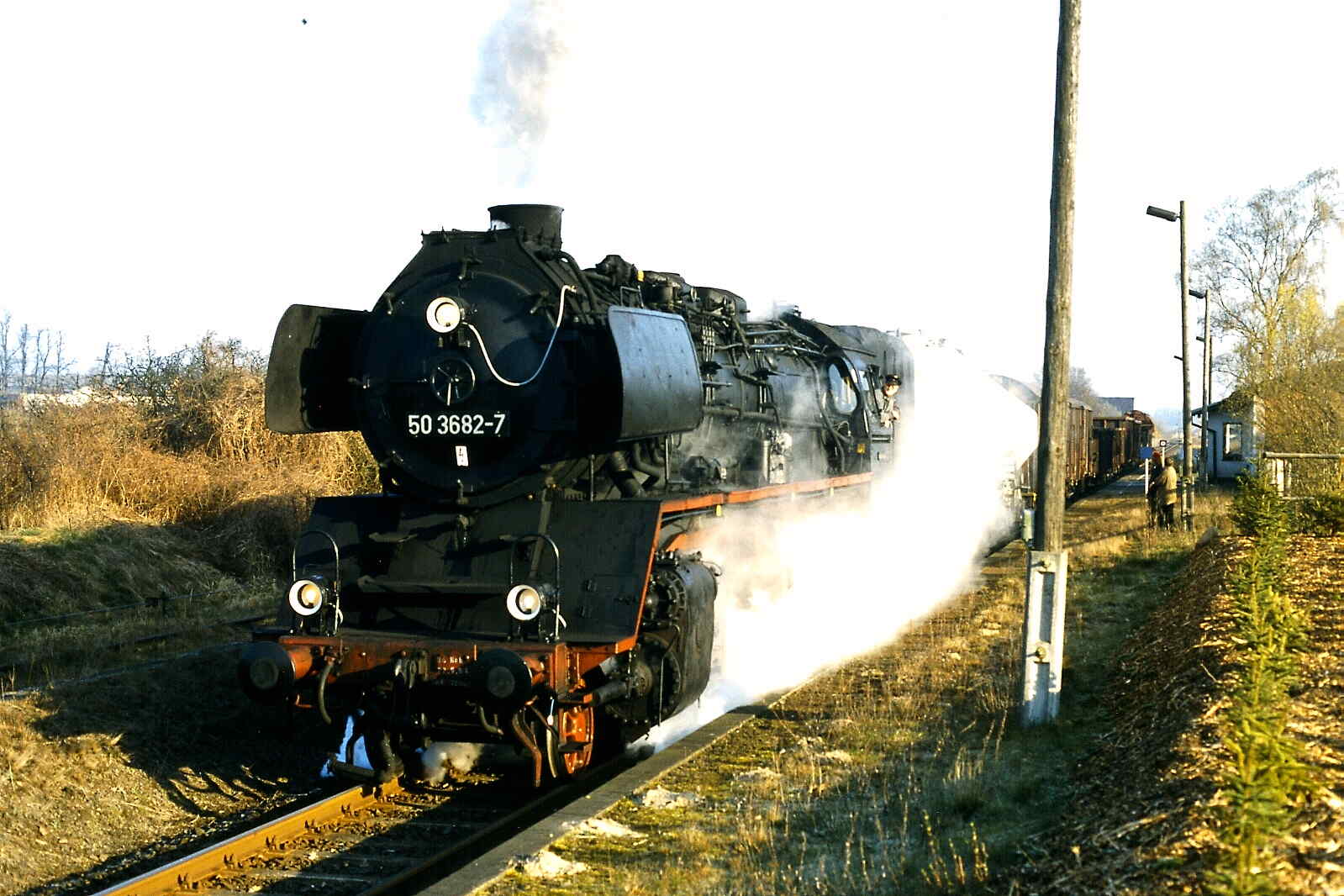 After the war, 350 of these locomotives remained in the Soviet occupation zone of Germany and were later used by the German Reichsbahn in the GDR. In the mid-1950s, it became clear that the locomotives would have to remain in service for a longer period of time because the planned switch to diesel and electric locomotives was delayed. For this reason, 208 Class 50 locomotives were refurbished between 1958 and 1962. This meant that they were fitted with new boilers and, in some cases, new tenders.