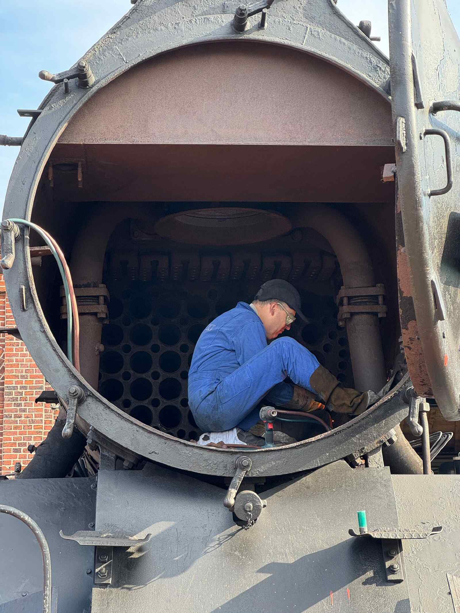 We also had to wake our steam locomotive Emma from her hibernation. This involved resealing various valves and hatches on and inside the boiler, which we had removed in the autumn to prevent frost damage over the winter. We also filled the boiler with water straight away and loaded it with wood for the first firing.