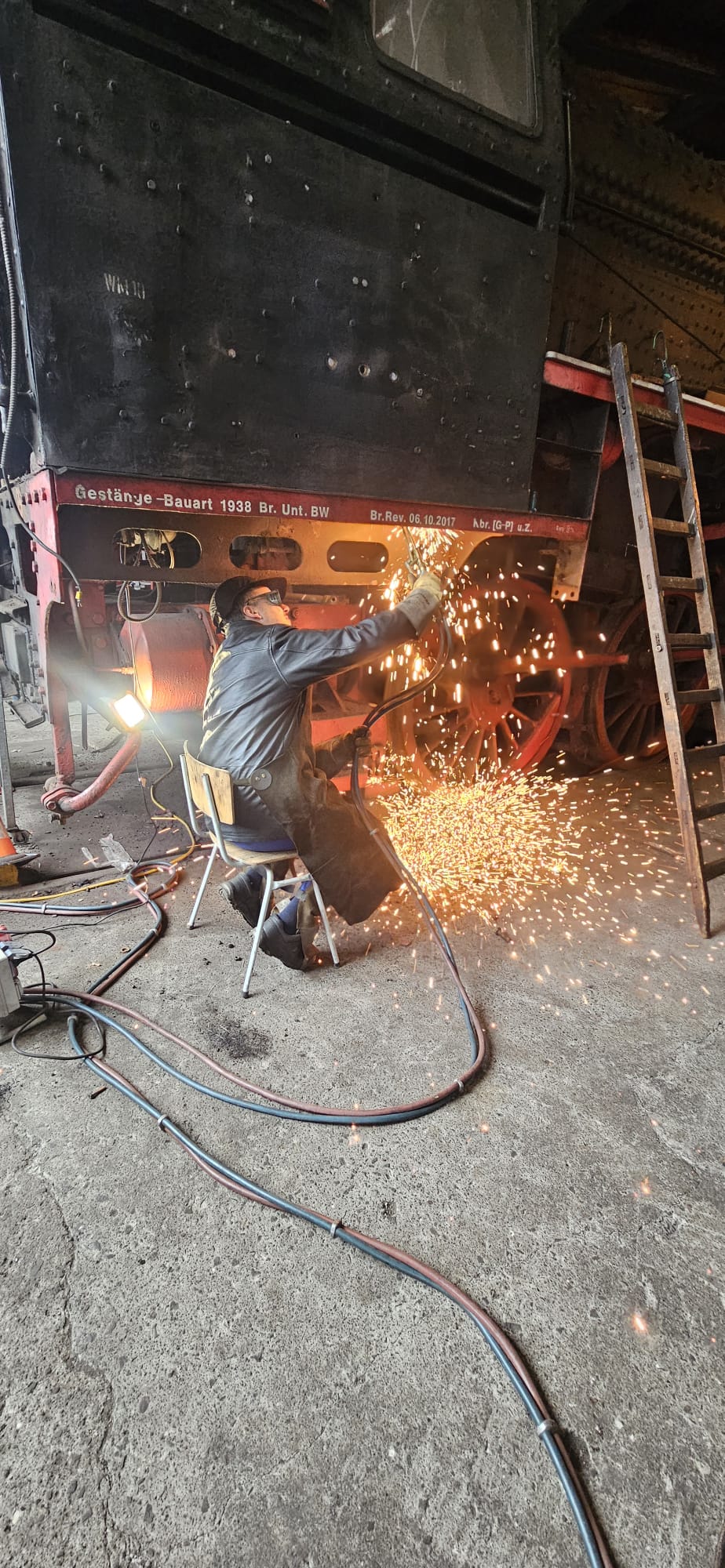 Before the season gets underway, we have made good progress on our steam locomotive 50 3682, which is currently being dismantled so that it can be fitted with a new boiler. Before that, however, the driver’s cab must be removed, which is currently the main task. You wouldn’t believe how many bolts and connections need to be loosened before the driver’s cab can be separated from the frame and the existing boiler. Quite a few of the bolts had seized up and could no longer be loosened. So the cutting torch was in constant use to cut them through. The attached photos show our colleagues at work.