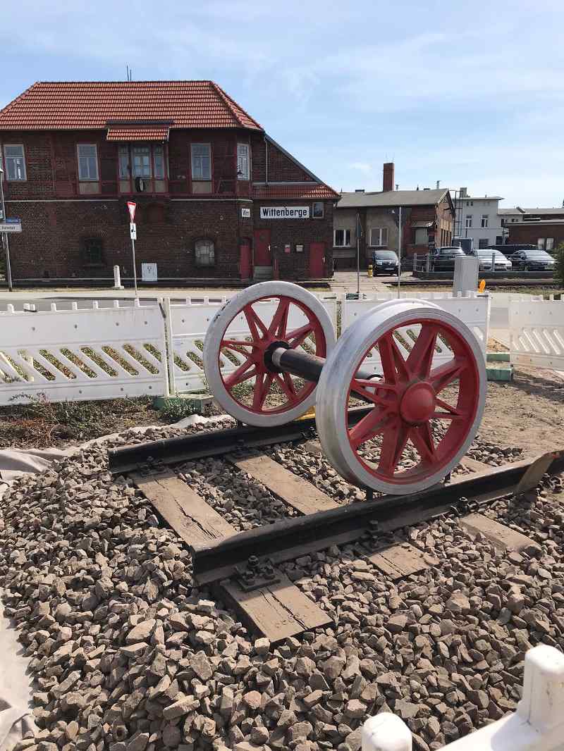 Already in the course of the past week, work was done again on our tracks. Several wooden sleepers were replaced with concrete ones. In addition, a railroad axle was placed on a piece of track at the street corner opposite our signal box Wm to draw attention to our museum.