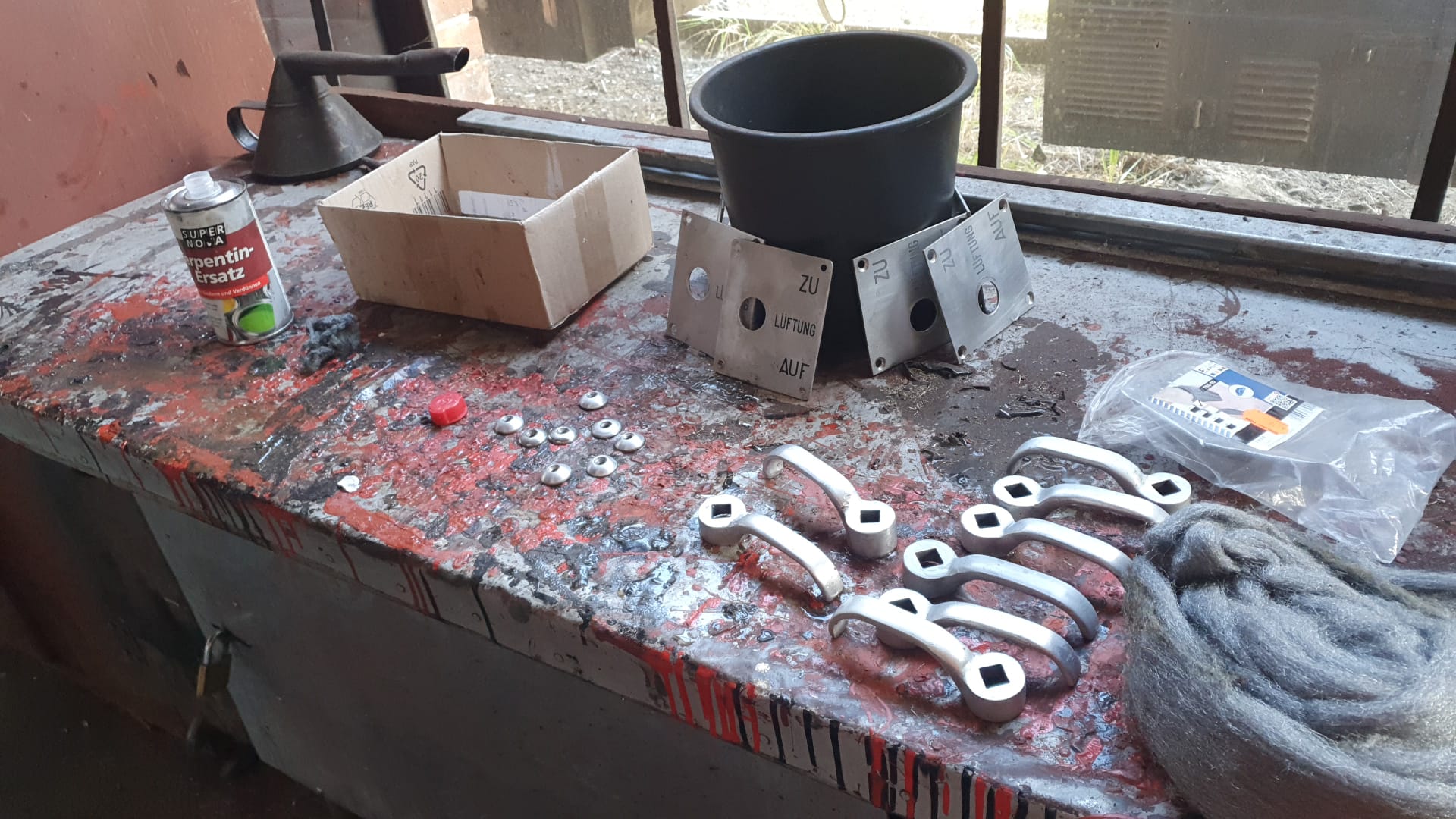 The next step is to install the handles used to open and close the ventilation. They have already been cleaned.