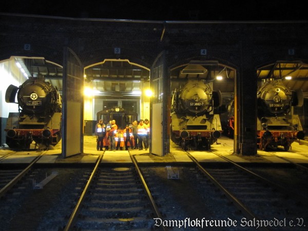 Angekommen. Dampfloks und einige Aktive am Abend des 13.10.2012 im Bw Wittenberge