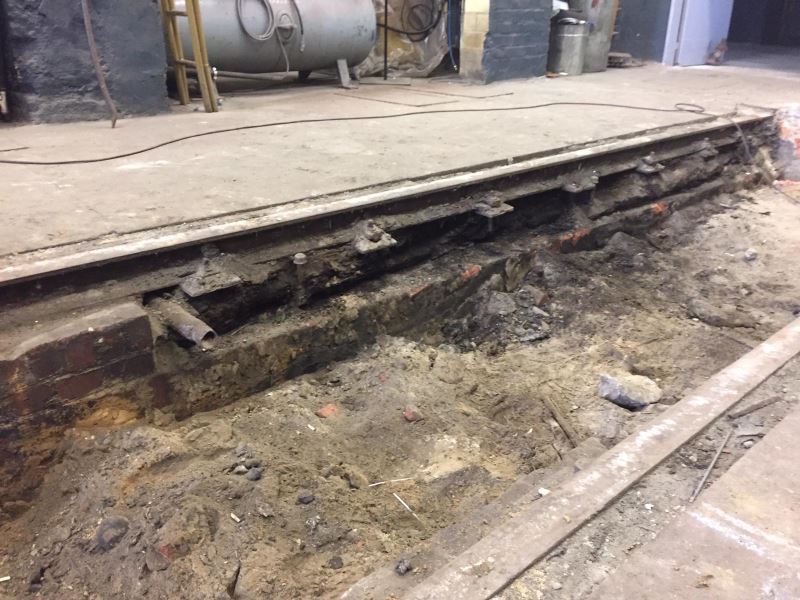 As we wrote in December, a number of our members are now tackling the tracklaying in No. 1 road in the locoshed. After removing the covering panels between the rails, the service pit underneath was partly exposed, enabling us to inspect the pit walls and the sleepers underneath the rails. Unfortunately, it turned out that in some places the sleepers were completely rotten.