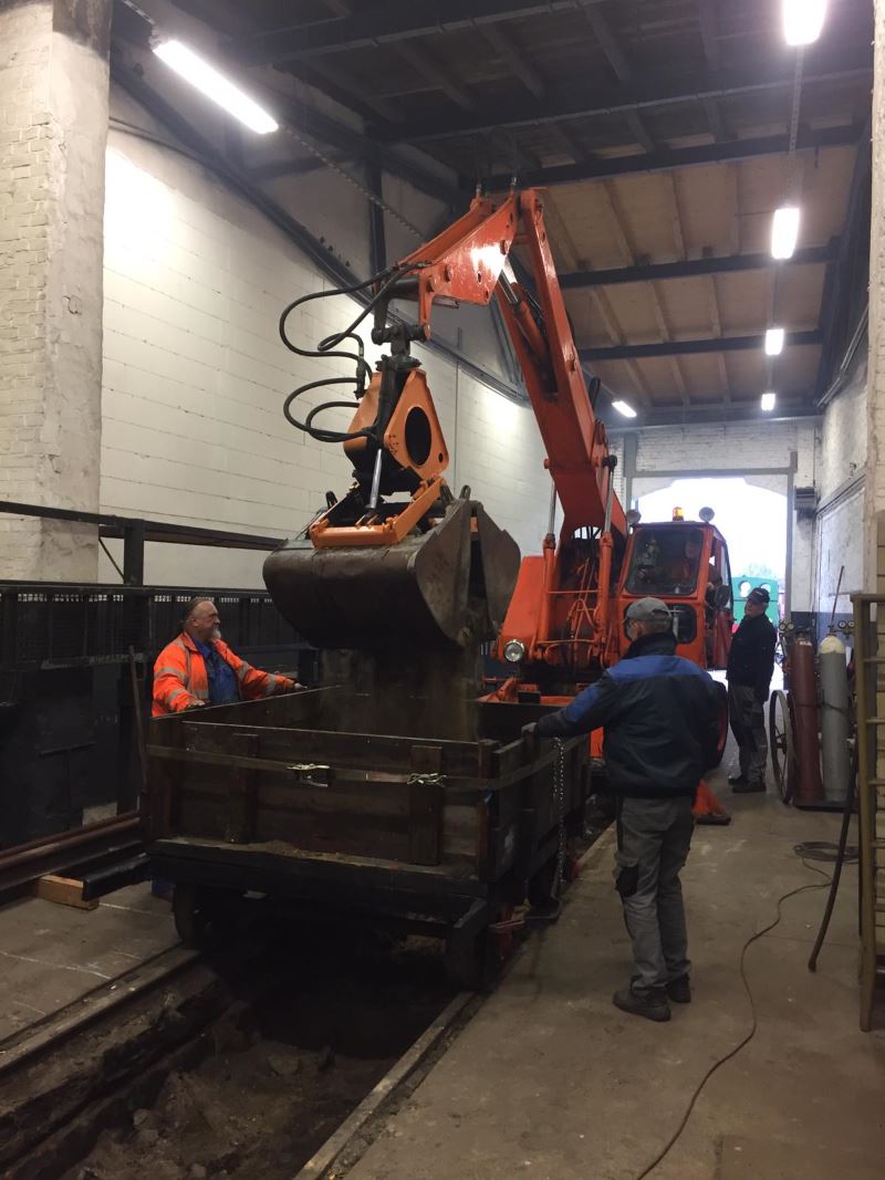 It was therefore decided to excavate the pit a little deeper, remove the rails altogether and change all the sleepers. Since there are no longer any fittings available to fix the old rails to the new sleepers, at the same time we will be laying new rails, for which there are still fixing materials available.