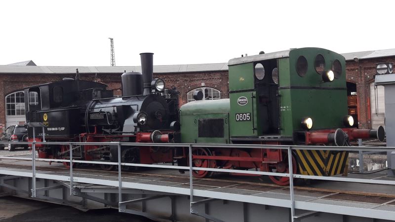 Diesellok 112 364 der Lok OST neben der größten und kleinsten Dampflok des Vereins