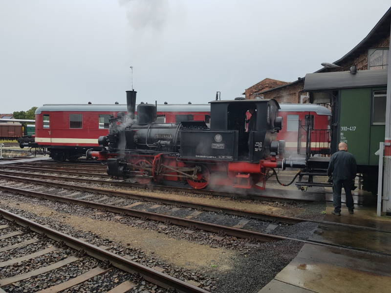 Wer am Sonntag anwesend war, konnte sogar die ersten Fahrten unserer Diesellok 114 774-3 mit eigener Kraft erleben. Die Diesellok wurde 1975 durch die Deutsche Reichsbahn in Betrieb genommen und ist mit ihren 45 Jahren das jüngste Mitglied in unserer Fahrzeugausstellung.