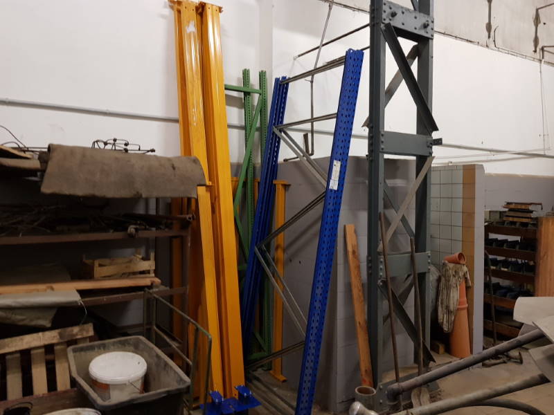 Wenn alles weg ist, kann ein neues Schwerlastregal installiert werden, dessen Bauteile bereits geliefert wurden: