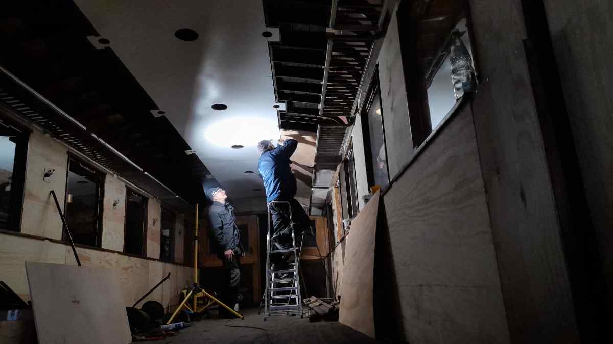 Mit deutlich sichtbaren Schritten ging der Innenausbau unseres Wagen 190 805 voran. Hier konnte die neue Deckenverkleidung aus Sperrholz angebracht werden.